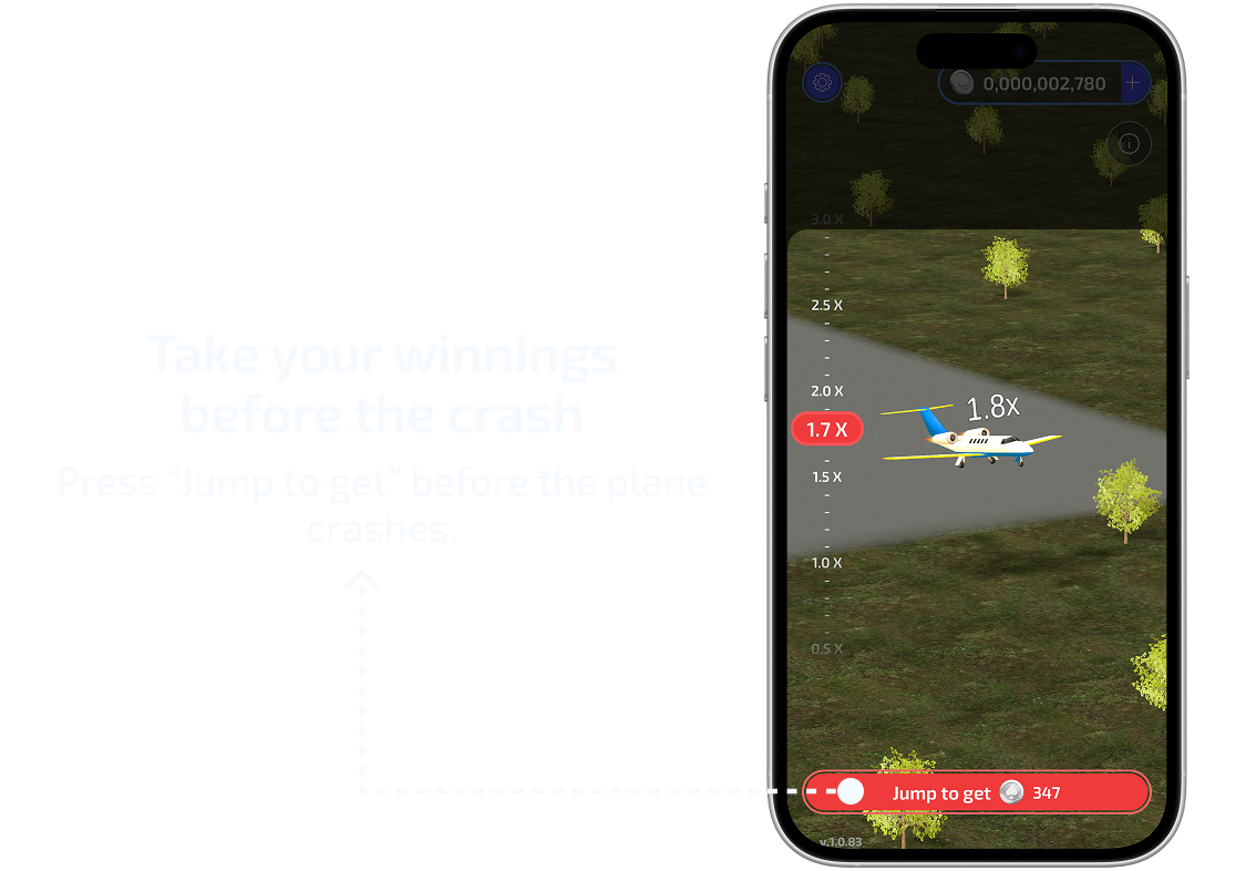 In Crash Game, you make a bet and watch the number go up. The longer you wait, the more you can win. But the game can stop at any time. If you don’t click “Jump to get” before it stops, you lose your money.